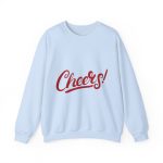⁰A cozy and heavy crew neck sweatshirt with a ‘Cheers’ design, perfect for colder months. The classic fit and crew neckline provide a comfy wearing experience while the double-needle stitching adds durability. Ideal for adults looking for a warm and stylish option for casual wear. Perfect for celebrating holidays, special occasions, or just staying cozy at home.